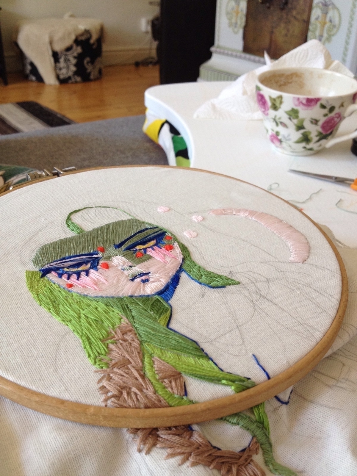 I have made some embroidery progress. I’ve caught a cold and decided to put my paintbrushes to the side until I feel better and enjoy Netflix and embroidery in the sofa until then.
