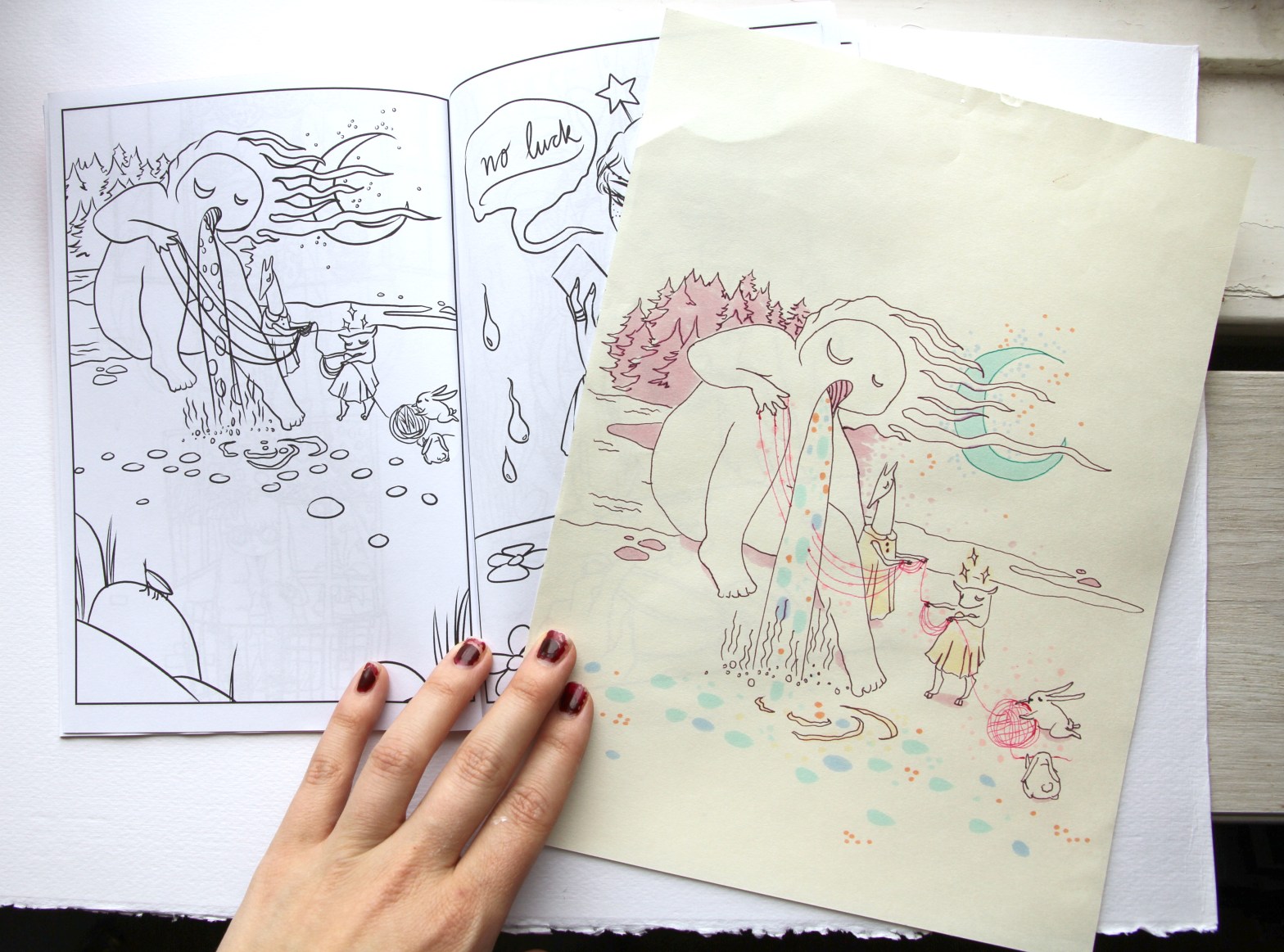 Cover of my coloringbook based on my sketchbook girlsOld sketch turned into a page in my coloringbookFrom my coloringbookFrom my coloring book. The Fried Egg Girls Club was popular on Instagram so I created a number of sketches with females wearing eggs for eyes. It got bigger than I intended but perhaps there was a need to be funny and serious at the same time for us all.The content of this abstract coloring book was created by my husband but I helped him design the cover.This is a beautiful coffee table art book with strong contemporary female art. There was an art show in Rome, Italy connected to this book as well and it was pink and amazing and empowering.From Pink Attitude book. My style was a bit different back then but still had the pop surrealism edge.